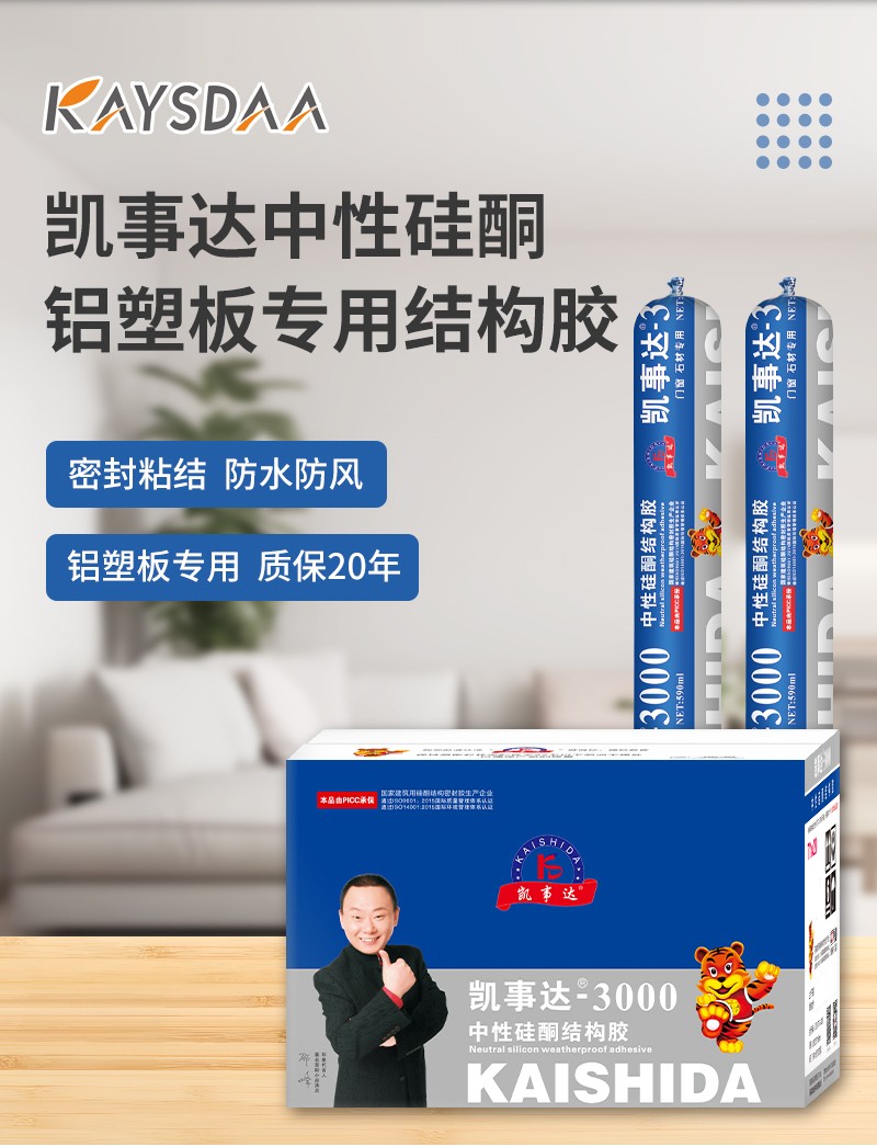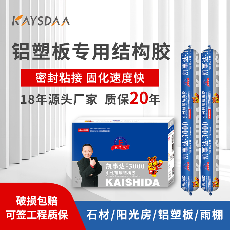 凱事達(dá)3000中性硅酮結(jié)構(gòu)膠,適用于石材、鋁塑板、平板玻璃、展柜 雨棚、陽(yáng)光房,超強(qiáng)防水耐候